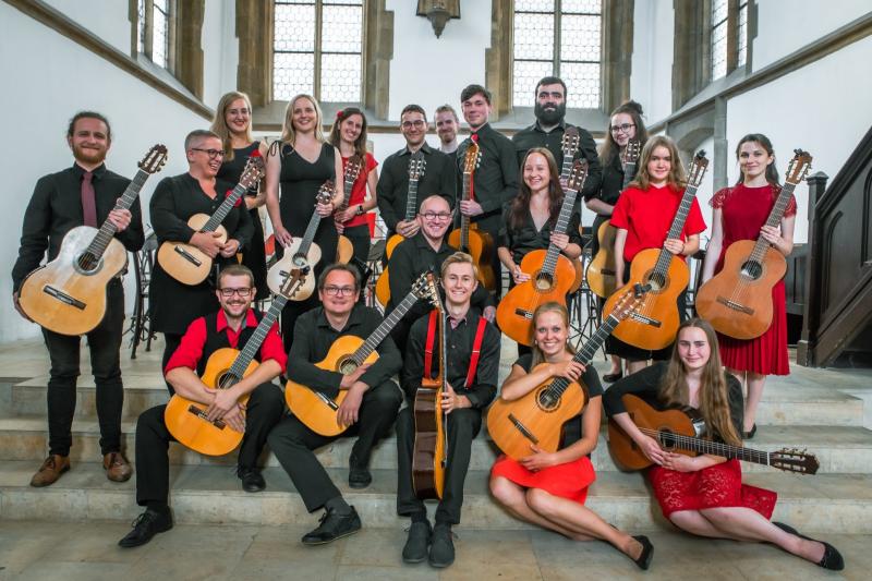 Večer plný kytarové hudby v podání Českého kytarového orchestru - souboru dvaceti pěti kytaristů pod vedením dirigenta Vladimíra Novotného.