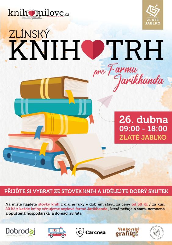 V jeden velký KnihoTrh se promění přízemí obchodního a zábavního centra Zlaté jablko ve Zlíně. V pátek 26. dubna zde budou k mání stovky knih v dobrém stavu za ceny u od 30 korun. A protoe jedná o charitativní akci, 20 korun z prodeje kadé knihy bude věnováno na dobrou věc. Výtěek z prodeje tentokrát získá azylová farma Jarikhanda v Březůvkách, ve které našla domov stará, nemocná a opuštěná hospodářská zvířata.
