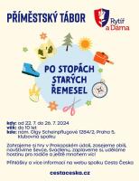 Cesta Česka pořádá letní příměstský tábor s názvem „Po stopách starých řemesel." Tábor se uskuteční v klubovně a sídle spolku v Praze 5 - Hlubočepy. Na letních táborech Rytíř a Dáma se děti učí samostatnosti, týmovosti, slušnosti, statečnosti a dalším dovednostem. Příměstský tábor je určen pro děti od 5 do 10 let. Program je připraven ve všední dny v čase od 8 do 16 hodin a zahrnuje výlety do okolí, návštěvu blízkého bazénu a proitková setkání a tvoření s tradičními řemesly. Děti je moné přihlásit do 15.5. 2024.