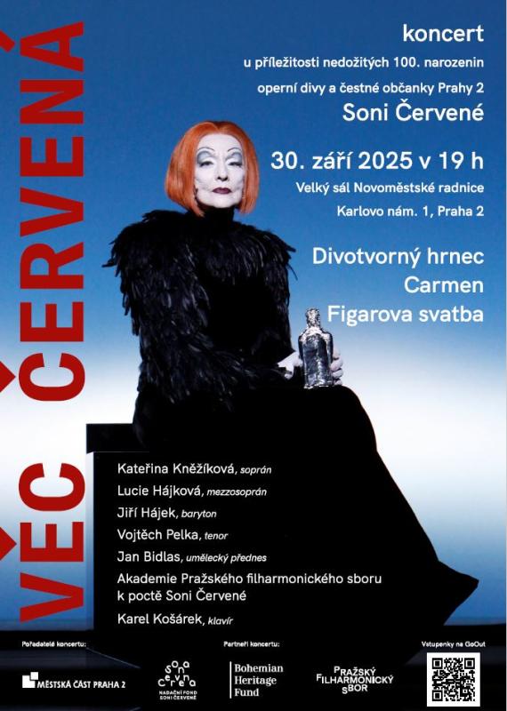 Nadační fond Soni Červené a Městská část Praha 2 vás zvou na koncert pořádaný k poctě operní pěvkyně Soni Červené.