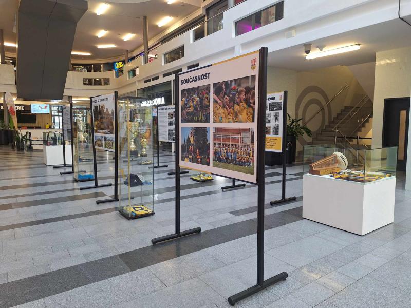 Fanoušci rugby i další návštěvníci obchodního a zábavního centra Zlaté jablko ve Zlíně mají a do 6. září monost seznámit se s osmdesátiletou historií zlínského rugby klubu. Výstava v přízemí prodejní galerie nabízí detailní pohled na vývoj a tradici klubu, klíčové momenty, které formovaly jeho podobu, ale také na současné dění.
